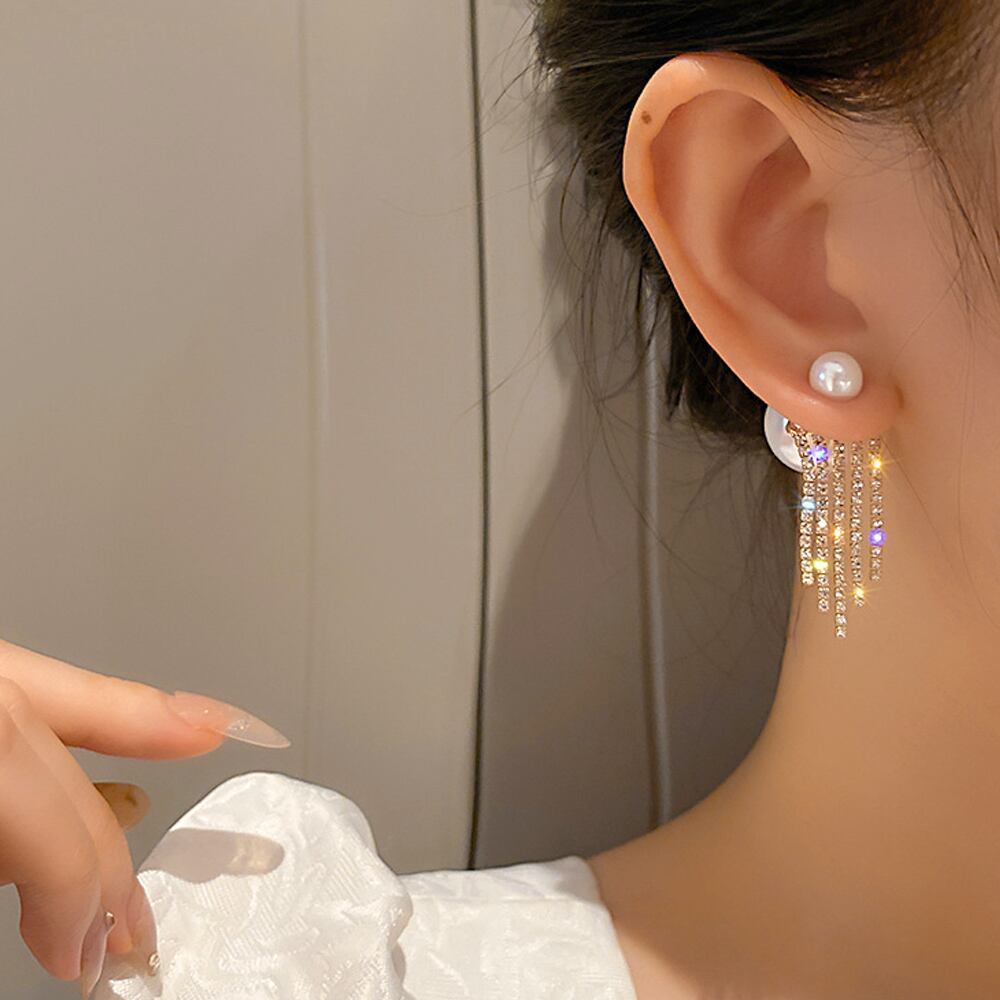 おしゃれ パーティーピアス キラキラ ラインストーン 揺れる 結婚式アクセサリー 韓国 パールバックキャッチ ピアス上品