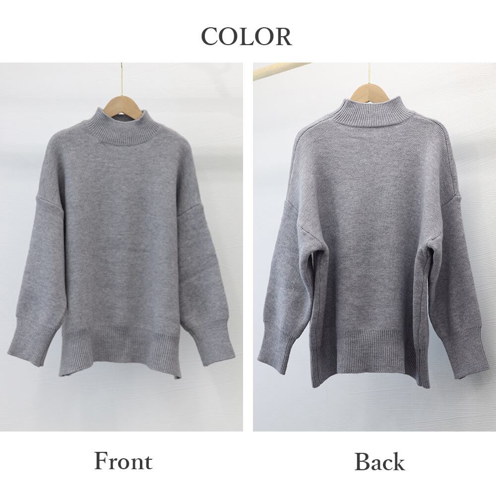 オフィスカジュアル ゆったり体型カバー モックネックニット
