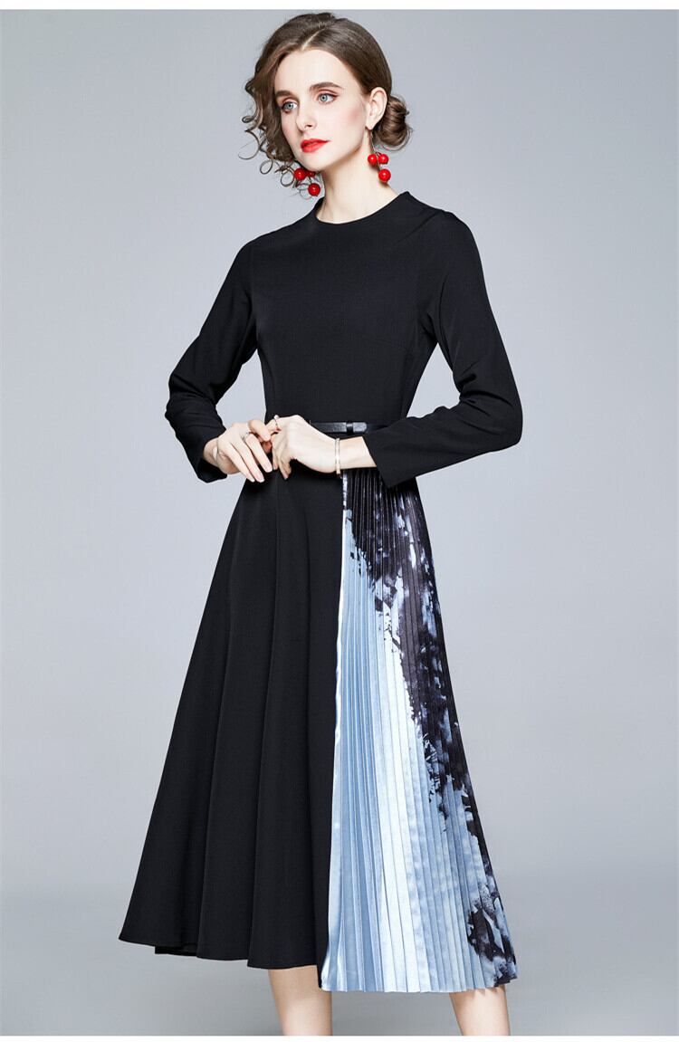ワンピース オシャレ柄付きプリーツ切替パーティーオフィス 二次会 新作 エレガント