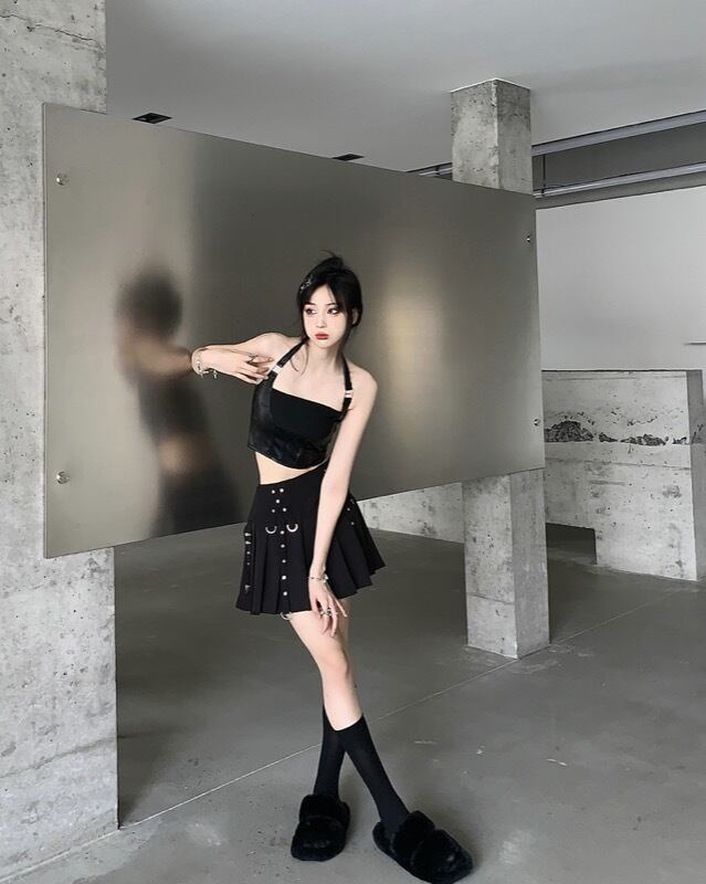スカート ミニスカート プリーツスカート ハイウェスト Aライン スタッズ レディース